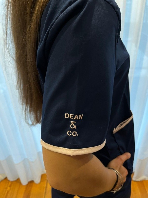 - Casaca con cuello en V en color AZUL MARINO con vivos en ROSA, con bolsillos DELANTEROS grandes.Tira en espalda para regular talle. Y bolsillo interno para guardar celular.